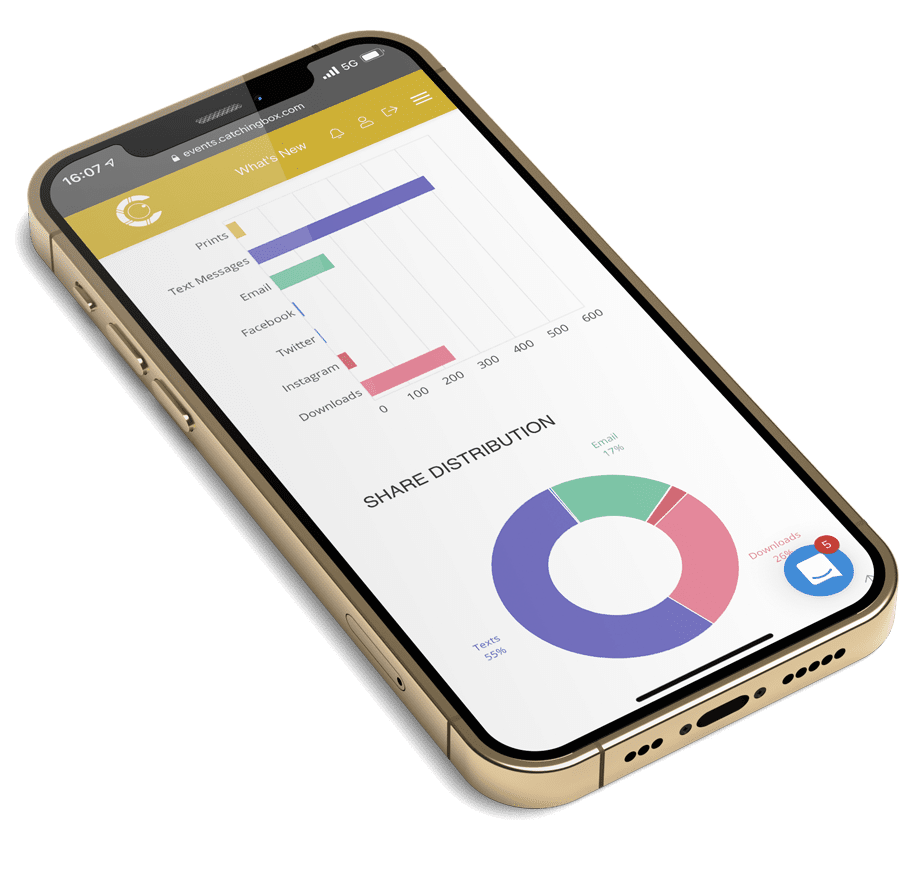 Collectez les données pour quantifier le succès de votre événement ! Analyse ROI, nombres de photos, de vues, de partages, d’impressions photos. Votre évènement va faire un carton.