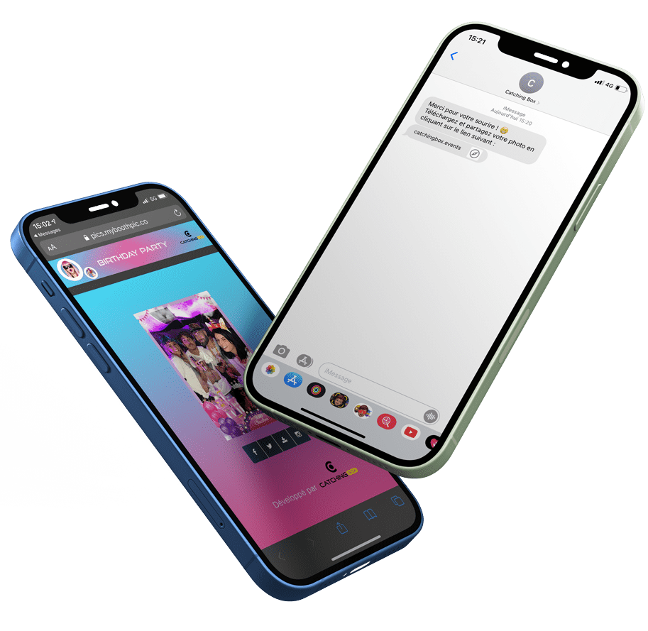 Pour une expérience client de folie, vos invités pourront s’envoyer leurs photos par SMS et seront redirigés vers un microsite personnalisé à votre effigie!